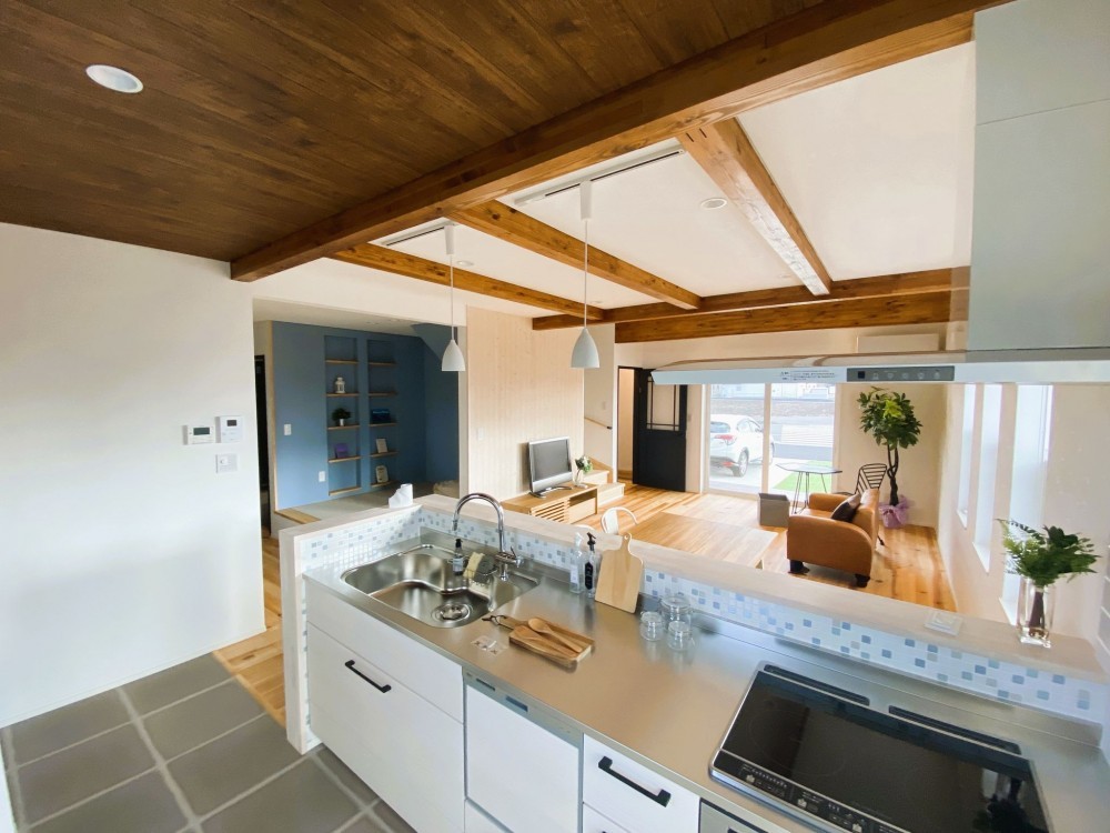 - システムキッチン、カウンターキッチン、食器洗浄乾燥機、浴室乾燥機、洗浄便座、追い焚き、駐車場2台分、エコキュート、トイレ2箇所、太陽光発電システム