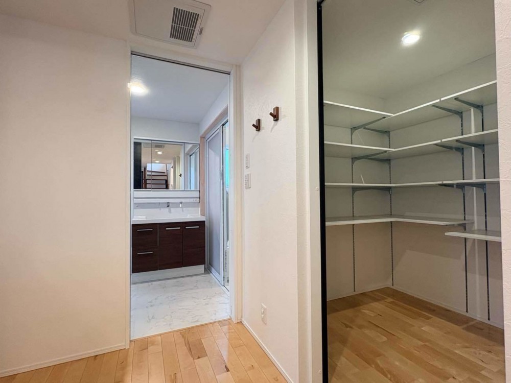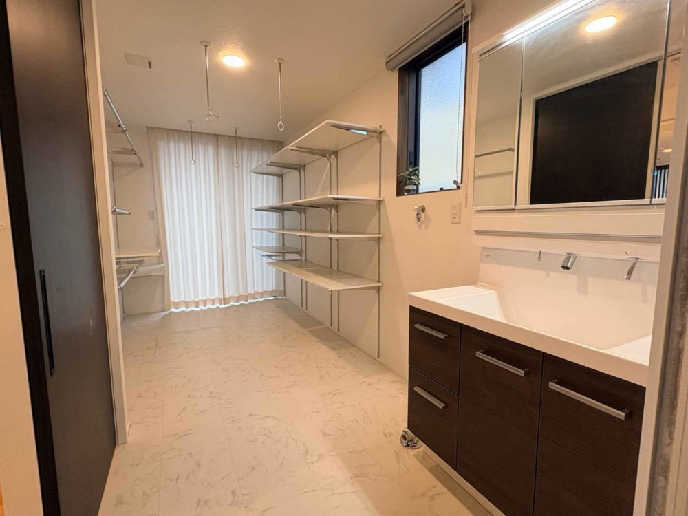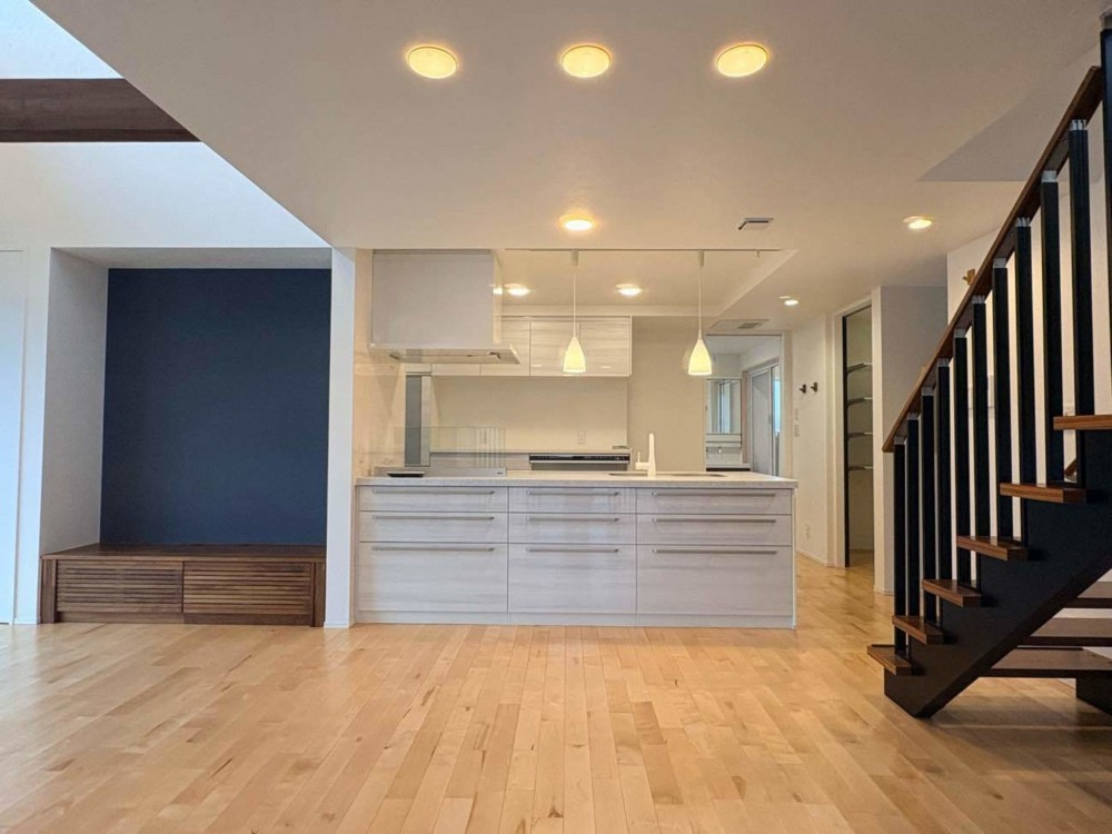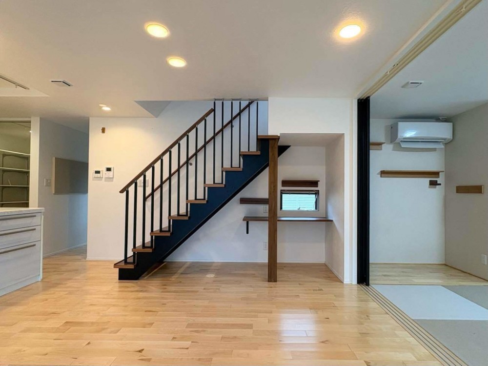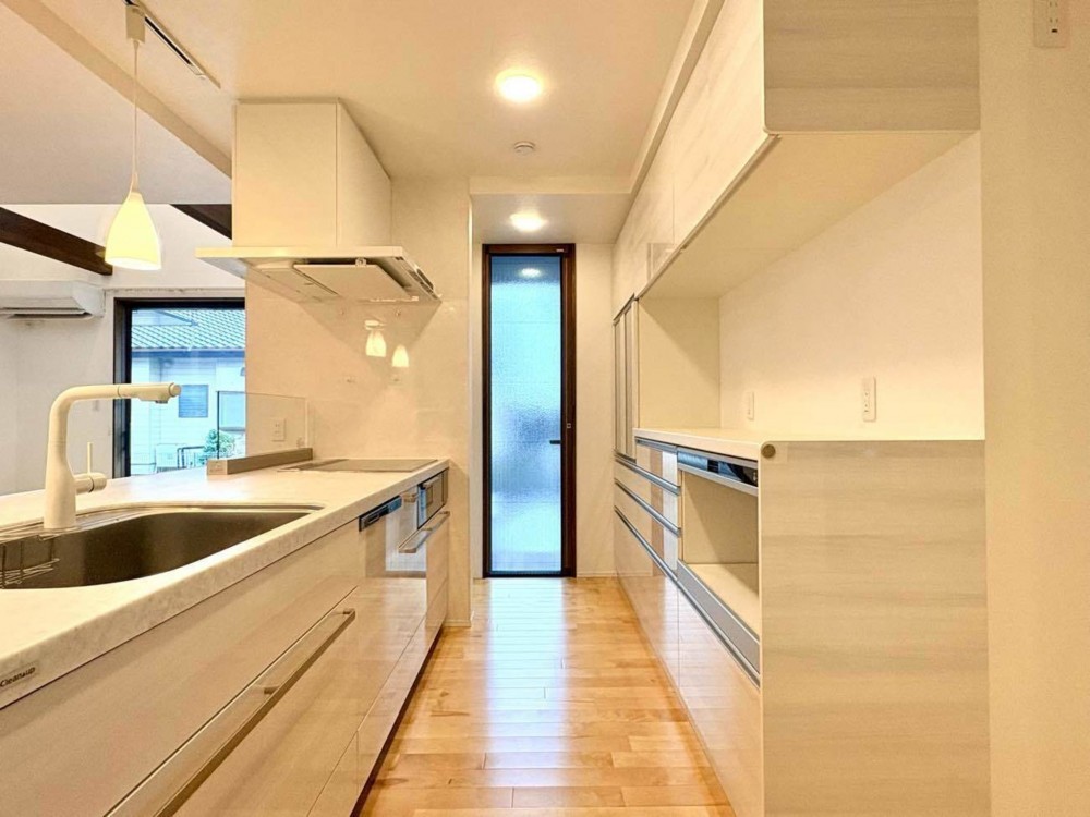 - オール電化、システムキッチン、カウンターキッチン、IHクッキングヒーター、食器洗浄乾燥機、モニタ付インターホン、洗浄便座、ウォークインクローゼット、追い焚き、駐車場3台分、エコキュート、トイレ2箇所、シューズインクローゼット、家事室、エアコン4台
