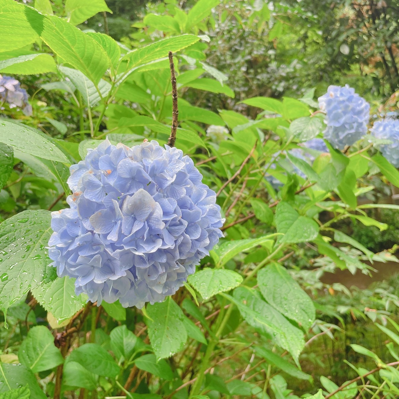 鳥のさえずりと綺麗に咲いた紫陽花は心が和みました😊